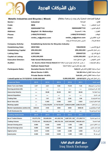 Page 108 - Iraq Stok Exchange - Companies Guide 2016