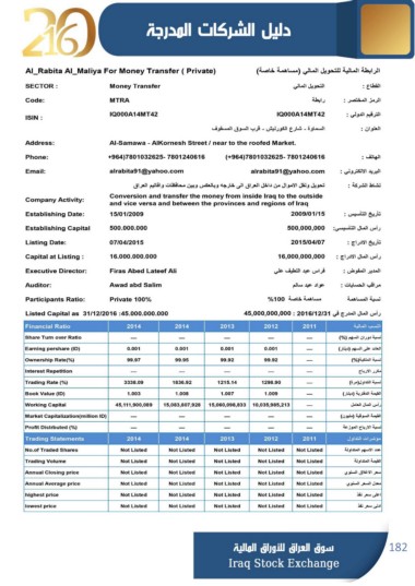 Page 182 - Iraq Stok Exchange - Companies Guide 2016