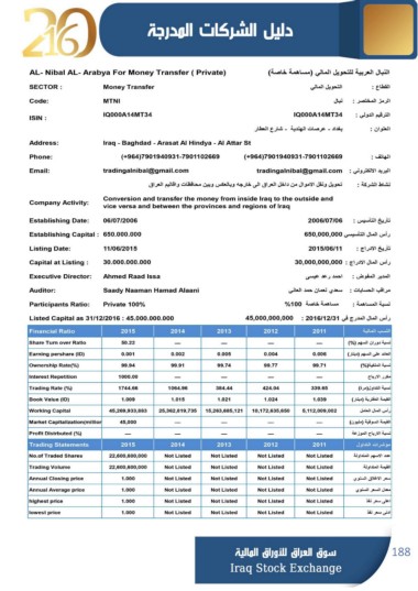 Page 188 - Iraq Stok Exchange - Companies Guide 2016