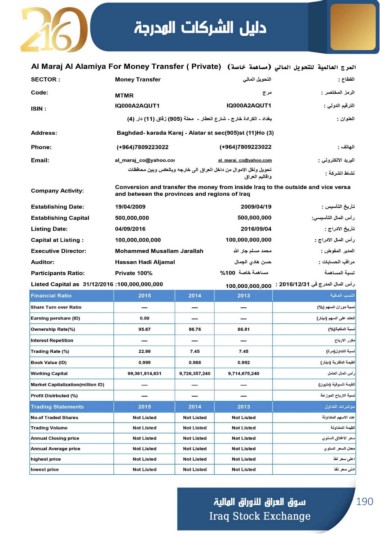 Page 190 - Iraq Stok Exchange - Companies Guide 2016