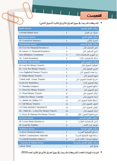 الفهرست الشركات المدرجة في سوق العراق للأوراق المالية (السوق الثاني). قرارات الهيئات العامة للشركات المدرجة في سوق العراق للأوراق المالية لعام .2016