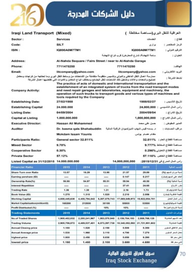 Page 70 - Iraq Stok Exchange - Companies Guide 2016