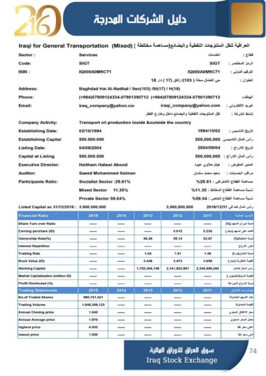 Page 74 - Iraq Stok Exchange - Companies Guide 2016