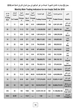 جدول ( )3مؤشرات التداول الشهرية المباعة من غير العراقيين في سوق العراق للاوراق المالية لعام 2019