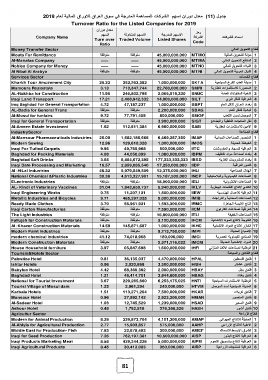 Company Name معدل دوران الاسهم المتداولة الاسهم المدرجة رمز اسماء الشركات