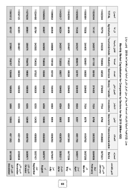 جدول ()13القيمة السوقية للشركات المساهمة المدرجة في سوق العراق للاوراق المالية شهريًا وقطاعياً لعام ( 2019مليون دينار)