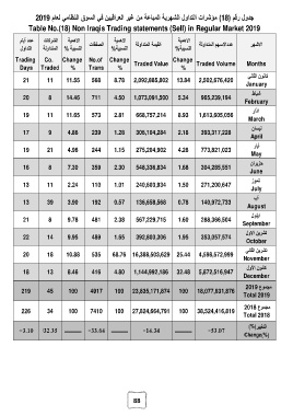 جدول رقم ( )18مؤشرات التداول الشهرية المباعة من غير العراقيين في السوق النظامي لعام 2019