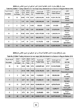 2019 ) مؤشرات التداول القطاعية المباعة من غير العراقيين في السوق النظامي لعام21( جدول رقم
