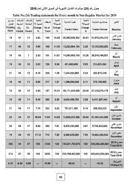 Table No.(24) Trading statements for Every month in Non Regular Market for 2019