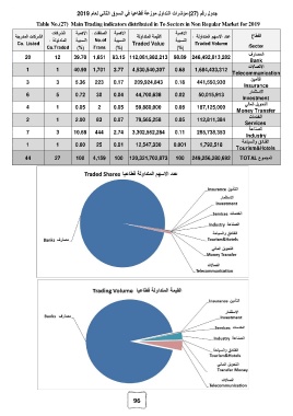 2019 ) مؤشرات التداول موزعة قطاعيا في السوق الثاني لعام27( جدول رقم