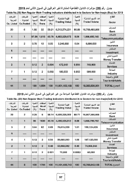 جدول رقم ( )29مؤشرات التداول القطاعية المباعة من غير العراقيين في السوق الثاني لعام 2019