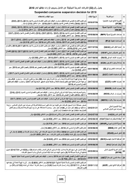 جدول رقم ( )33الشركات المدرجة الموقوفة عن التداول بموجب قرارات ايقافها لعام 2019